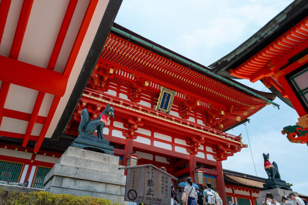 Fushimi Inari Shrine, founded in 711 AD, is dedicated to Inari, the Shinto god of rice, fertility, and prosperity. This shrine is renowned for its thousands of vermilion torii gates, donated by individuals and businesses in hopes of receiving good fortune. The shrine’s fox statues, seen throughout the grounds, are believed to be messengers of Inari, adding to the mystical ambiance of the place.