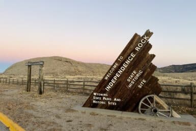 The route offers wide open Wyoming landscapes, views of rolling sagebrush country, and frequent wildlife sightings that make the journey as enjoyable as the destination.