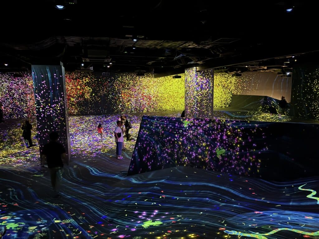 For Karlye and Rylie, TeamLab Forest Fukuoka was a playground of radiant color, movement, and imagination. They bounced through light and sound, played digital “catch,” and saw their own artwork spring to life. The blend of physical activity, hands-on art, and immersive projection made every moment feel like stepping into a living dream.