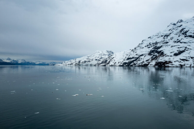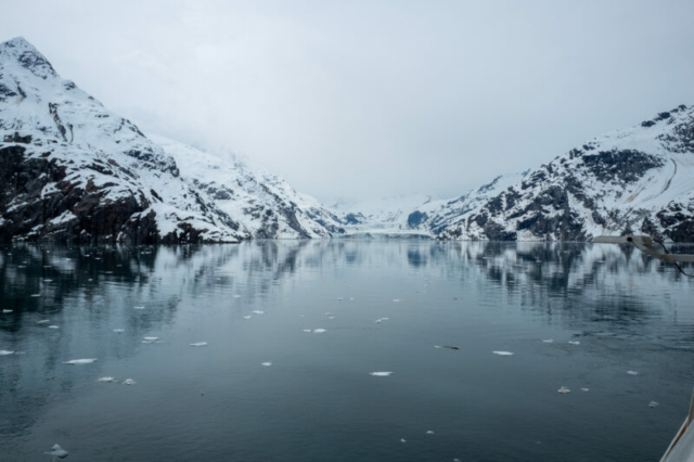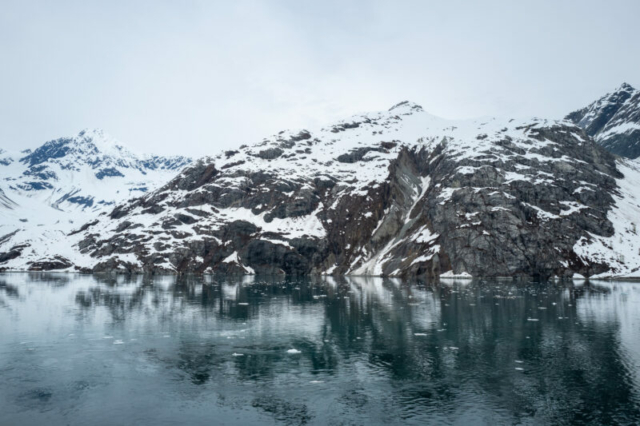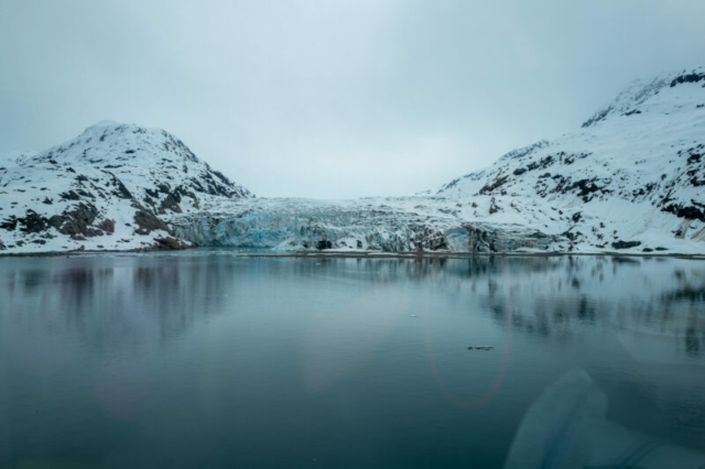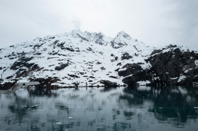 Our glacier tour concluded with the Grand Pacific Glacier. This glacier, unlike the previous two, has a more subdued color palette, with dark streaks of sediment carried down from the mountains. Despite its less vibrant appearance, the Grand Pacific Glacier is equally impressive in size and history.